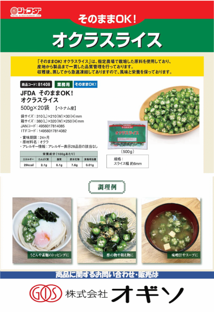 【OGISO NEWS】・そのままOK!オクラスライス ・プチきざみ油揚げ