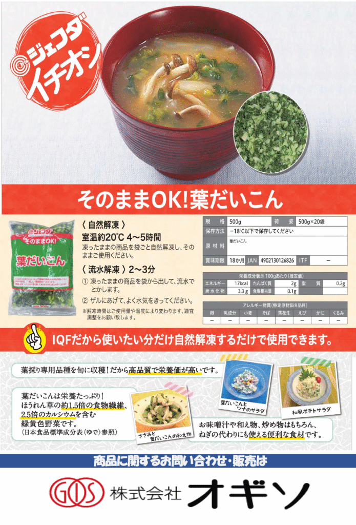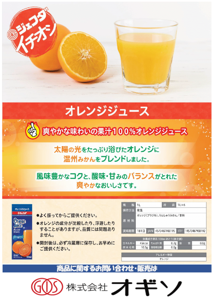 【OGISO NEWS】・オレンジジュース ・そのままOK!葉だいこん